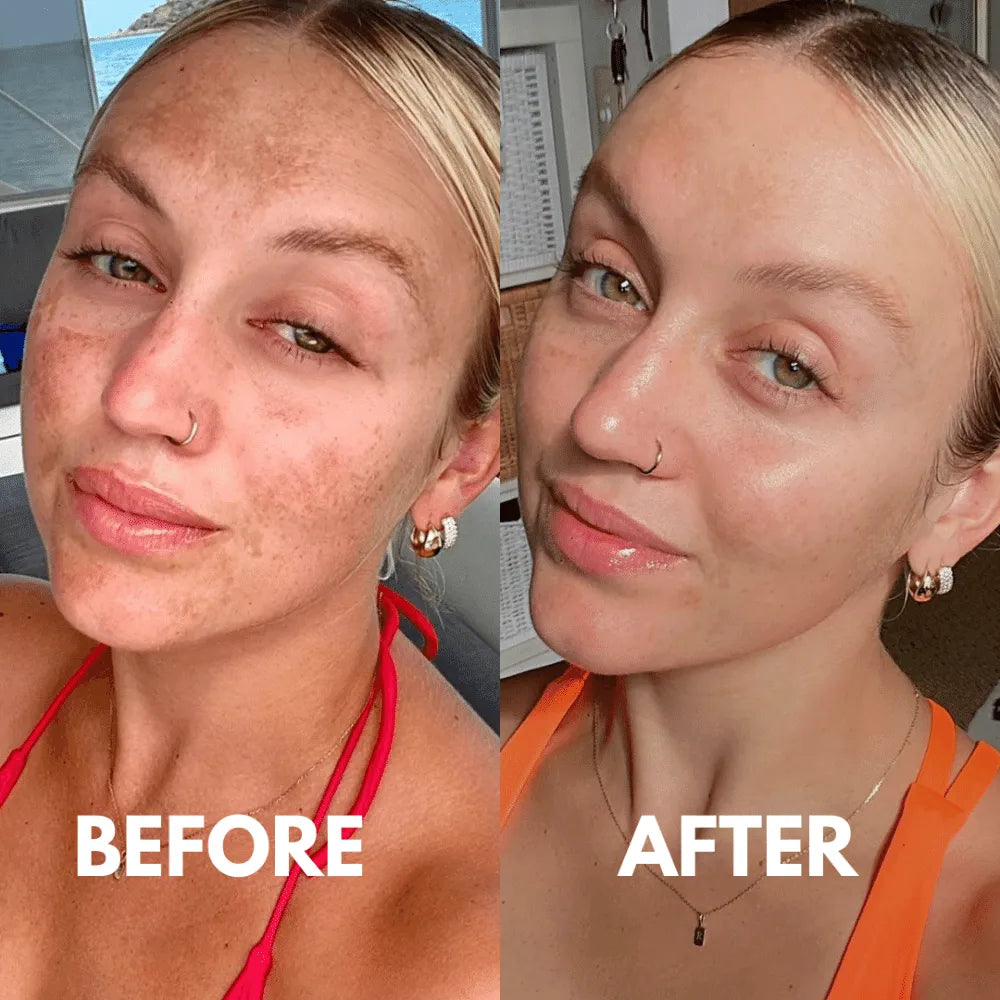 After 6 weeks of consistent use of all four Bespoke products, Brittaney saw a clear reduction in pigmentation and melasma across her forehead and cheeks. Her skin tone appears more even and calm, with dark patches noticeably softened.
